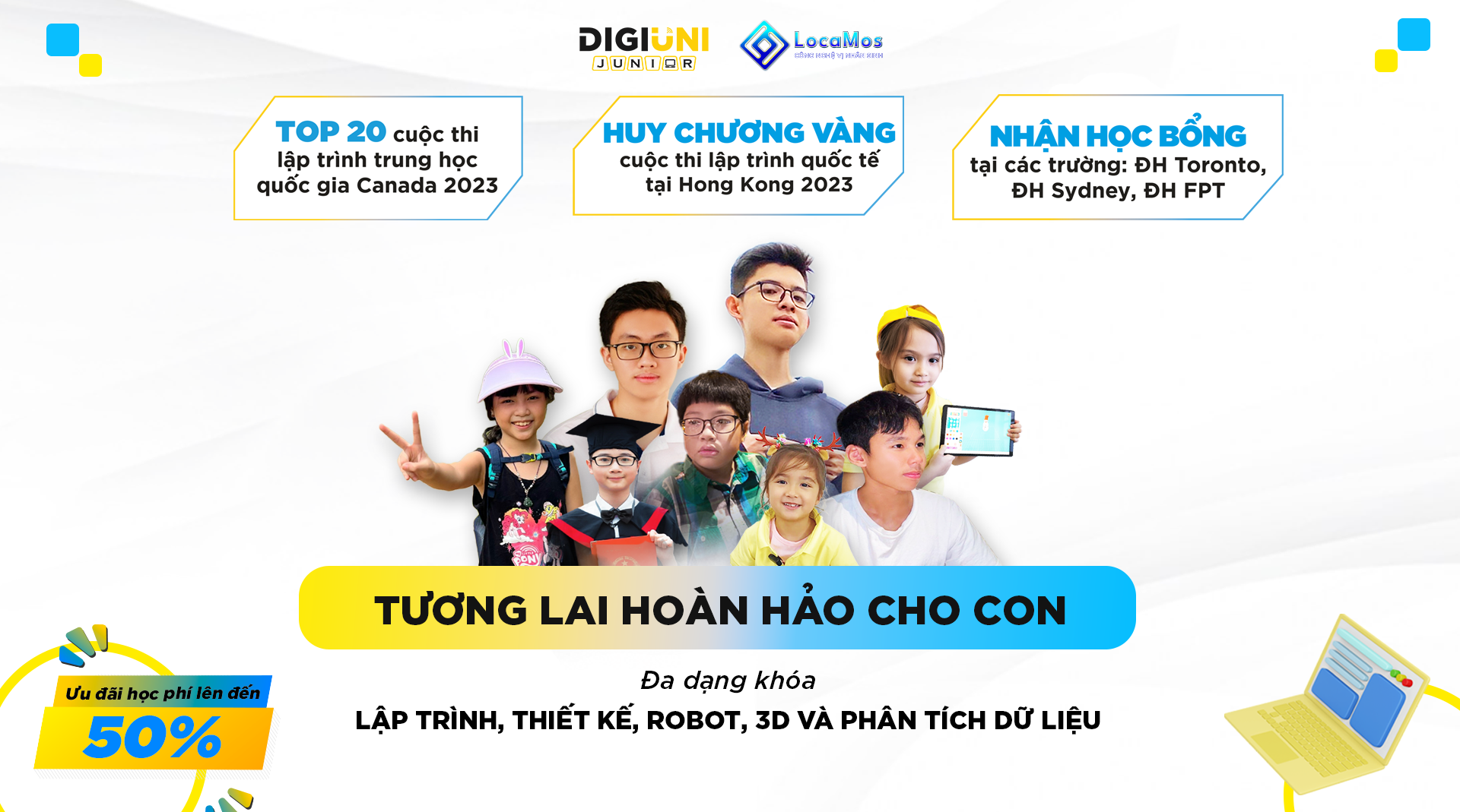 Với kinh nghiệm tổ chức hơn 6,000 lớp học cho học sinh trên toàn lãnh thổ Việt Nam và quốc tế như: Hàn Quốc, Nga, Canada, Úc… DigiUni không những củng cố vững chắc kiến thức nền tảng về công nghệ số mà còn giúp thế hệ trẻ phát triển về mặt tư duy logic sáng tạo và các kĩ năng mềm quan trọng khác, nhằm đảm bảo cho các con có được tương lai thành công hơn trong kỉ nguyên công nghệ.